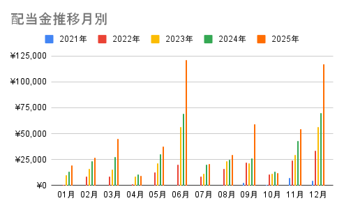月別で見ると、毎年同じ月でも受取額が増えているのが一目でわかります。