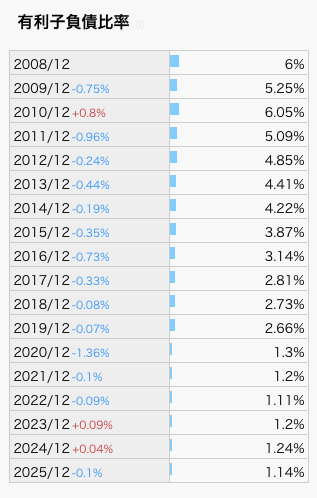 有利子負債比率が1%台と全くもって問題ないレベル。鉄壁です。
