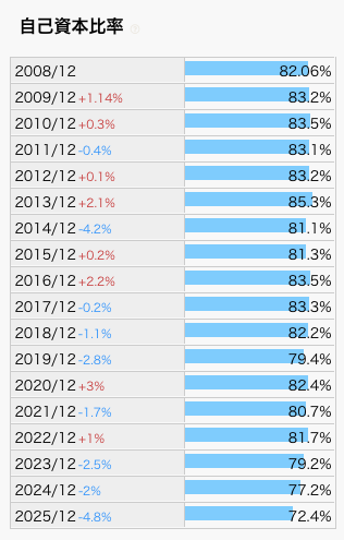 企業の安全性を測る指標ですが、非常に高い水準を維持しています。