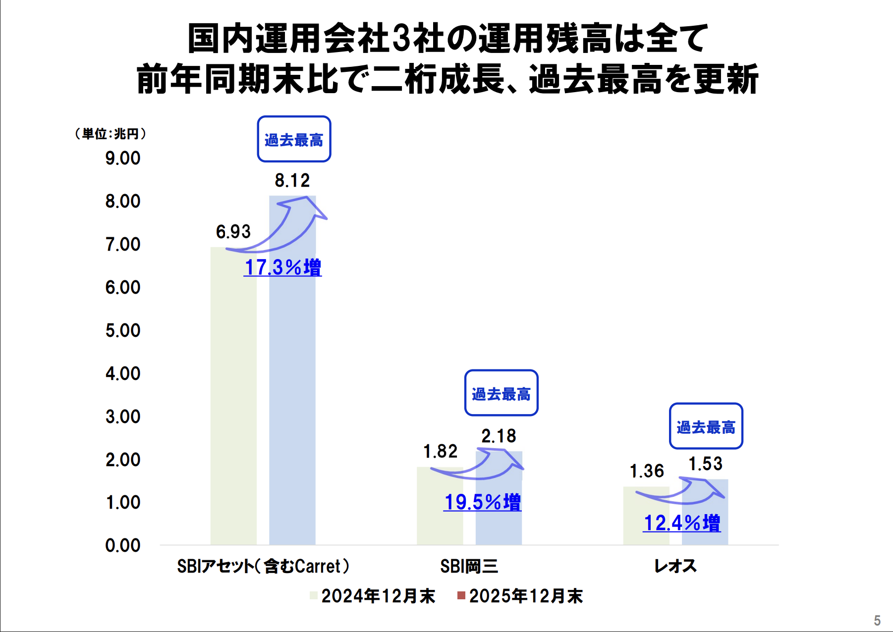 この会社の下には、特徴の違う3つの子会社(SBIアセット、SBI岡三、レオス)が入っているのですが、驚くべきことにこの3社すべてが「前年同期末比2桁成長(10%以上のプラス)」という凄まじい業績を叩き出しています。