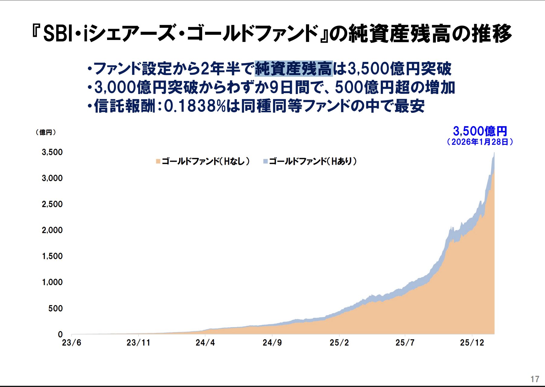 同社のゴールドファンドは、たった9日間で500億円もの資金が新たに流れ込み、あっという間に3500億円を突破しました。